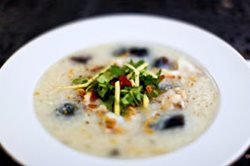 75g yến sào đã ngâm, Bào ngư 50g, Hành 10g, Gừng 5g, Cháo trắng 500g. Gia vị : muối 3g, bột ngọt 5g, ít bột tiêu.